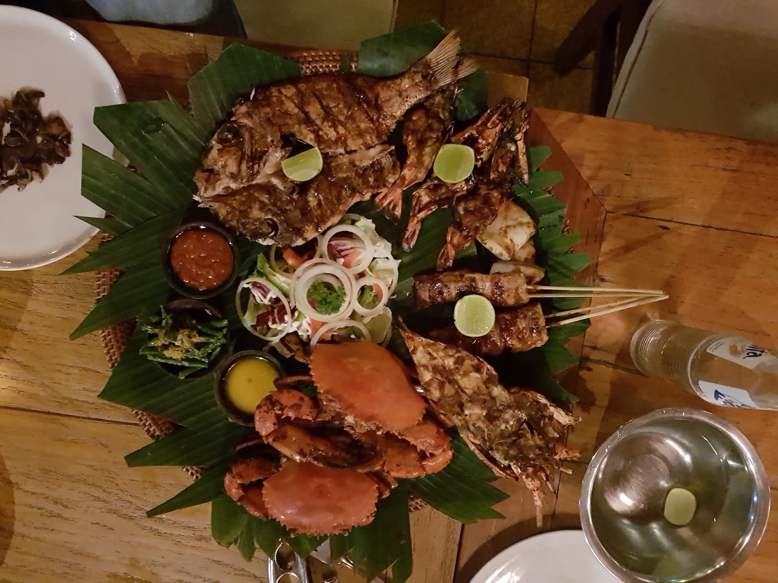 Quindi torniamo con una bella passeggiata a piedi al ristorante Monk house; dobbiamo dire che merita davvero! Prendiamo un piatto enorme di pesce, una vera delizia! Ovviamente lo paghiamo abbastanza, 850 mila rupie, ma ne è valsa la pena! Prendiamo un taxi per rientrare in hotel.Fabio