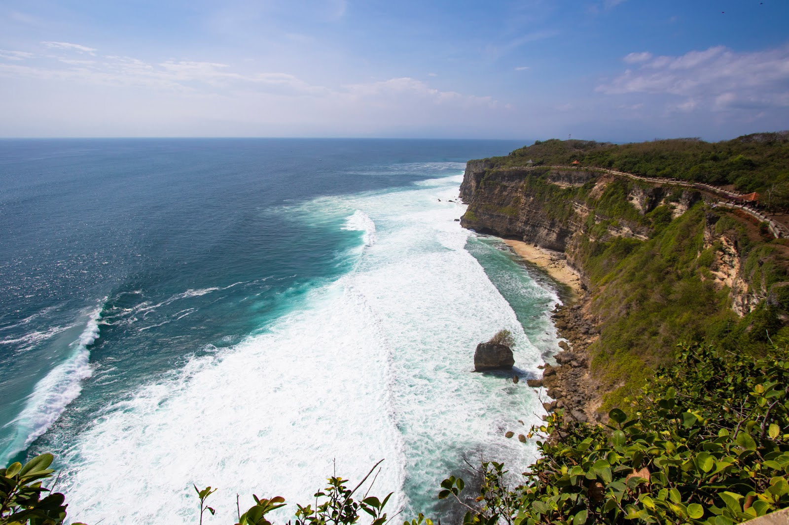 Anche questo tempio è famoso perché si può ammirare il tramonto la sera e la potenza dell'oceano indiano con le sue onde enormi è impressionante. Come anche al Tanah Lot, la sera è possibile assistere a spettacoli di danza tradizionale. Il costo del biglietto di ingresso al tempio è di 10 mila rupie, compreso come sempre il sarong da indossare.